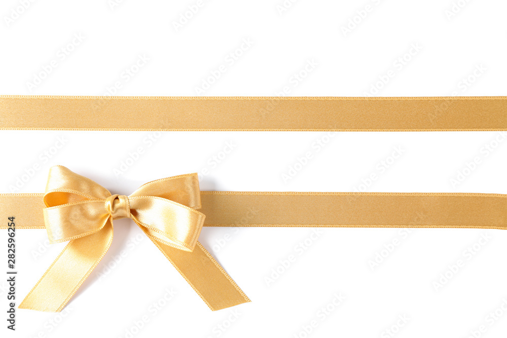 Golden ribbons with bow isolated on white background. Gift concept