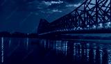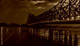 Silhouette of Howrah Bridge at the time of Sunrise. Howrah Bridge is a bridge with a suspended span over the Hooghly River in West Bengal.