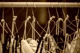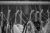 a hanger with clothes, iron shoulders hang on a clothesline,