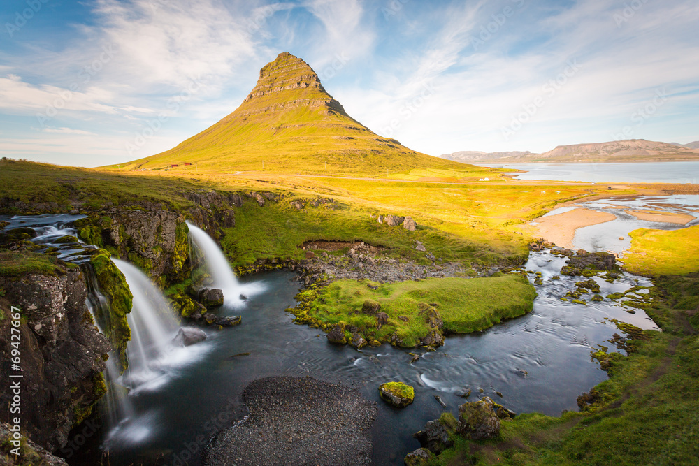 Orchid branch with beautiful flowers on light grey stone background, above view. Space for text