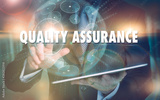 A hand selecting a Quality Assurance business concept on a futuristic computer display.