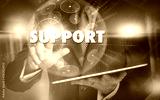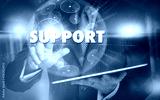 A hand selecting a Support business concept on a futuristic computer display.