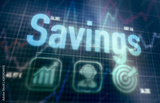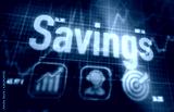 Savings concept on a blue dot matrix computer display.