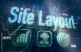 Site Layout concept on a blue dot matrix computer display.