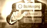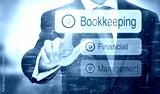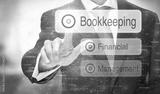 A businessman selecting a button on a futuristic display with a Bookkeeping concept written on it.
