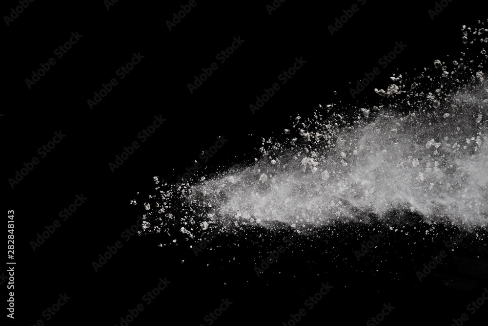 White powder explosion on black background. Colored cloud. Colorful dust explode. Paint Holi.