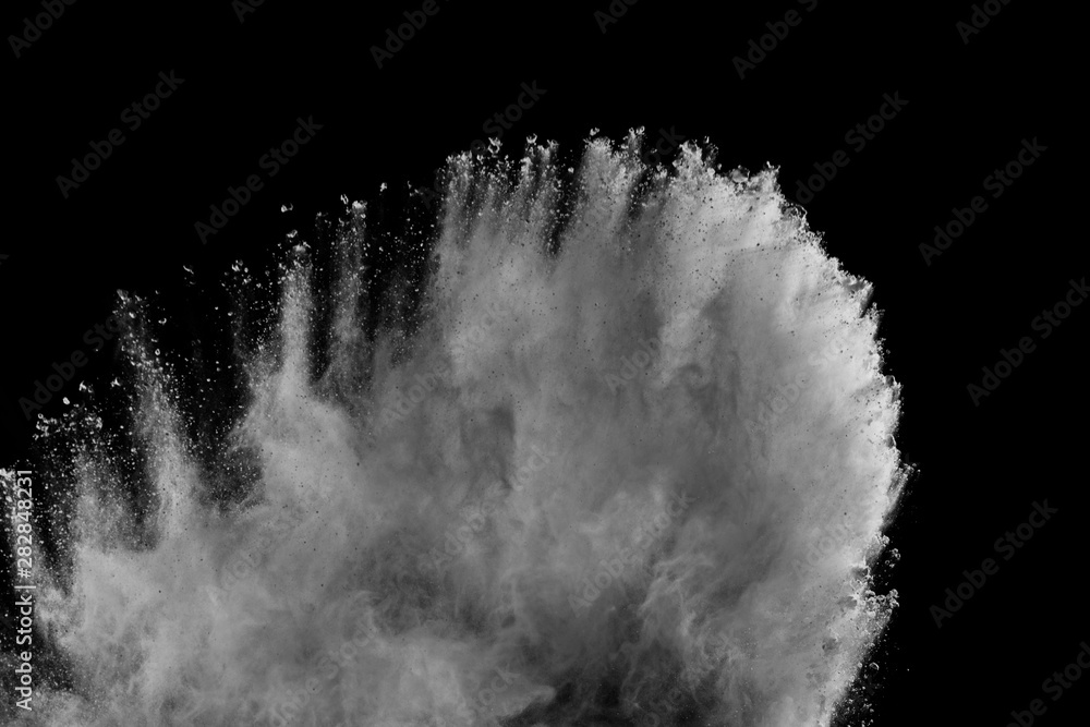 White powder explosion on black background. Colored cloud. Colorful dust explode. Paint Holi.