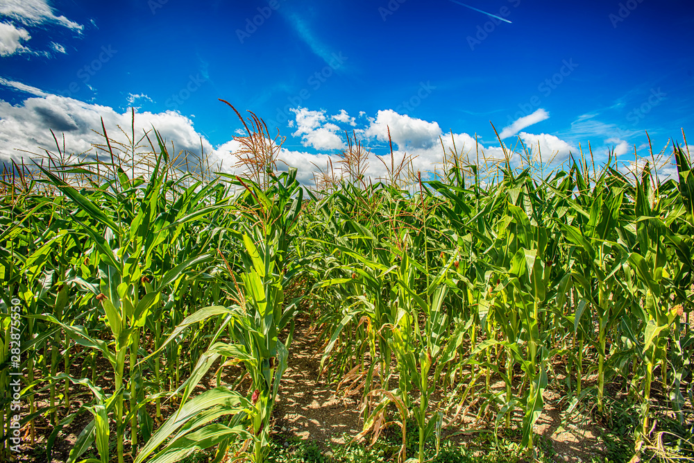 green corn field in summer time