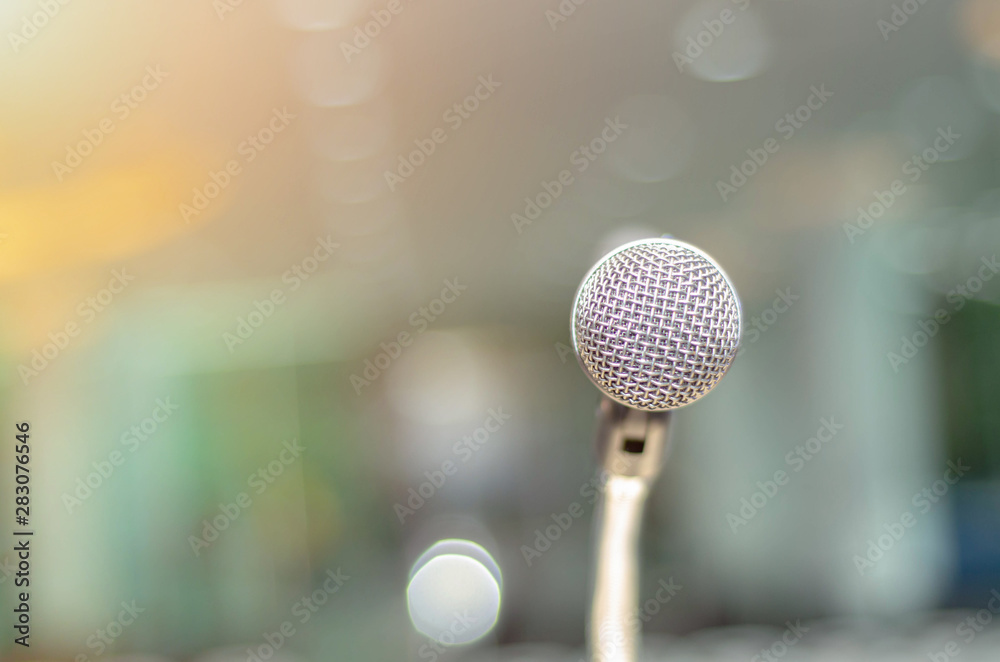 Close up Microphone for broadcast karaoke or on stage. Mic is on stage in the conference room.