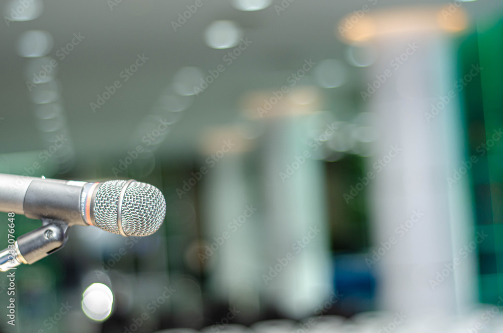 Close up Microphone for broadcast karaoke or on stage. Mic is on stage in the conference room.