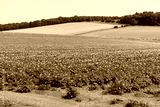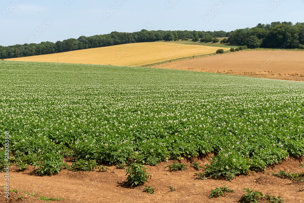 Gloucestershire, England, UK. August 2019. A crop of Markies variety of potatoes growing in a field near Ford in Gloucestershire