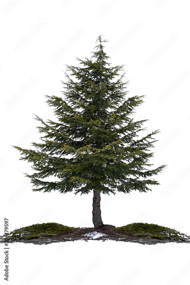 Fir or Pine coniferous tree isolated on white. Natural Christmas tree isolated.