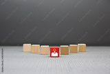 Wooden blocks with businessman icon.