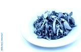 Green salad with arugula, lettuce, tomatoes, avocado, lime, tuna and olives in plate on isolated white background. Healthy food, clean eating, dieting