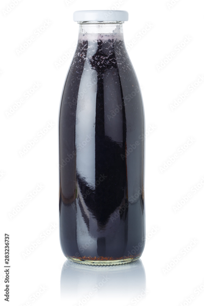 Blueberry smoothie fruit juice drink blueberries in a bottle isolated on white