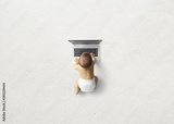 Little cute kid looking at laptop, education concept