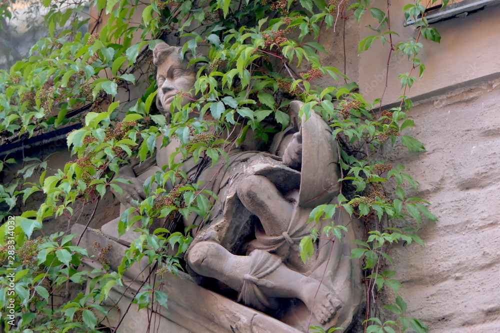 Figur überwachsen von Wein