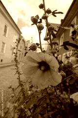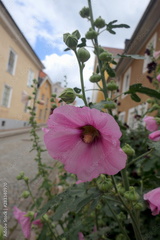 Stockrosen vor Haus
