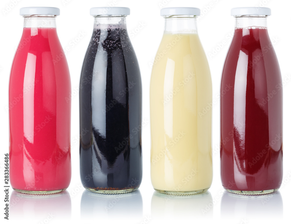 Collection of fruit smoothies fruits juice drink wild berries in a bottle isolated on white