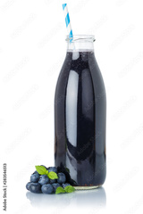 Blueberry smoothie fruit juice drink straw blueberries in a bottle isolated on white