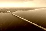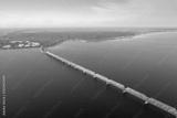 Long "Imperial" bridge over Volga river in Ulyanovsk, Russia aerial view