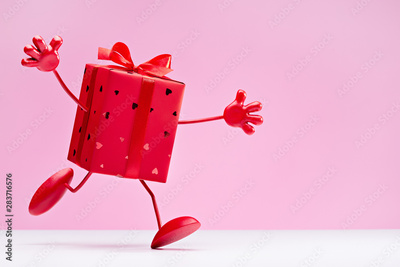 Unexpected congratulations. I am your gift! Running cheerful gift in red box.