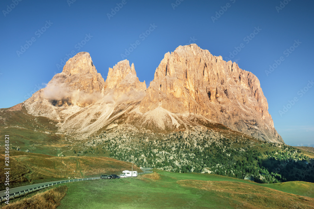 Scenic view on Passo Giau in Dolomites national park, Italy
