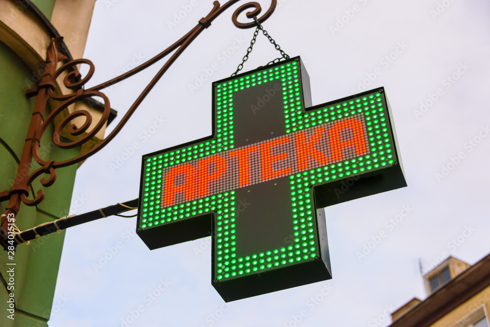 LED sign saying "Apteka" outside a pharmacy chemists shop, Wrocław, Wroclaw, Wroklaw, Poland