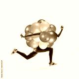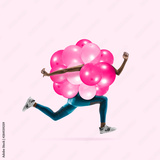 Run like you are weightless. Female body as pink balloons on coral background. Negative space to insert your text. Modern design. Contemporary art collage. Concept of movement, sport.