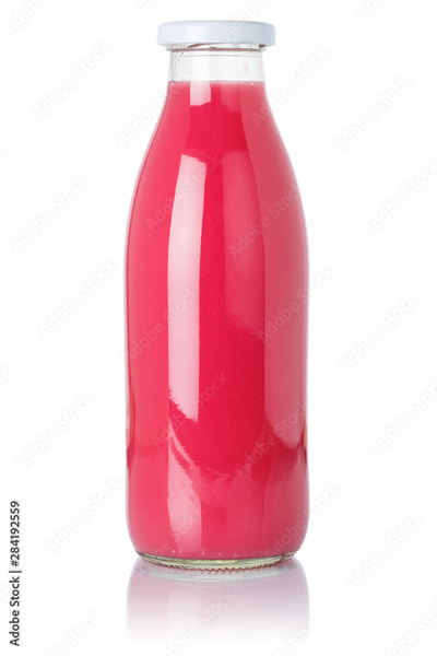Strawberry smoothie fruit juice drink in a bottle isolated on white