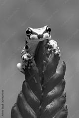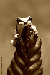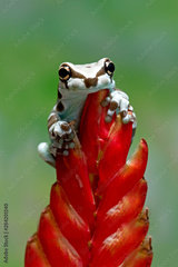Beautiful Tiny Amazon tree frog on read bud