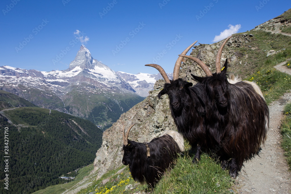 Matterhorn wandern mit Walliser Schwarzhalsziegen