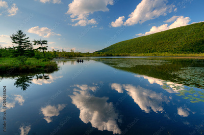 USA, New York State. Clouds reflected in Labrador Pond