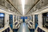 Moscow, Russia - August, 8, 2019: interior of Moscow subway carriage.
