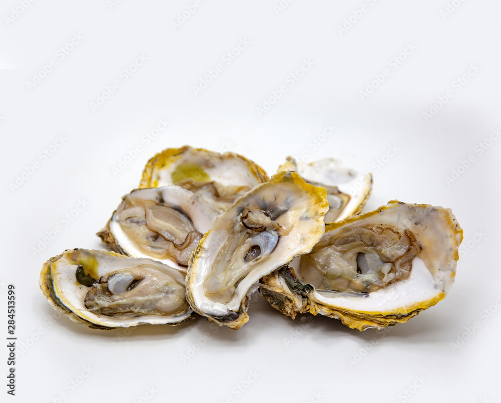 open fresh oyster seafood on white isolated background