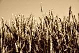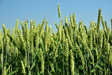 wheat ears of wheat on background of blue sky