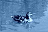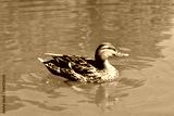 A female single brown wild duck is swimming in a pond