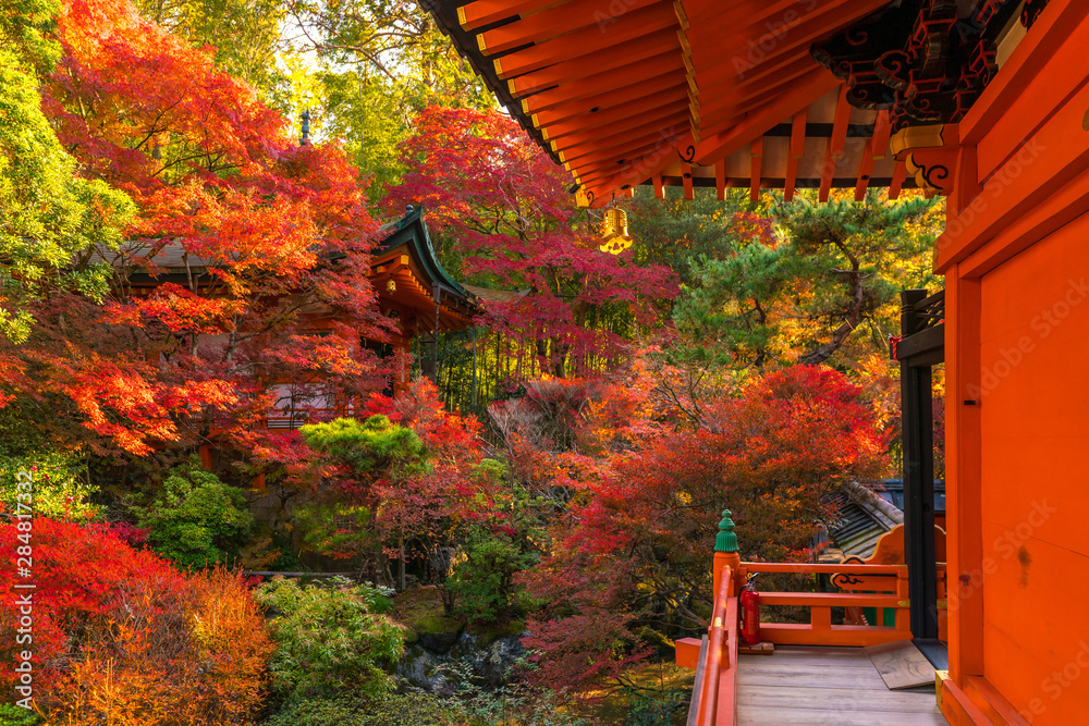 Japan autumn image. Bishamon-do temple in Kyoto city