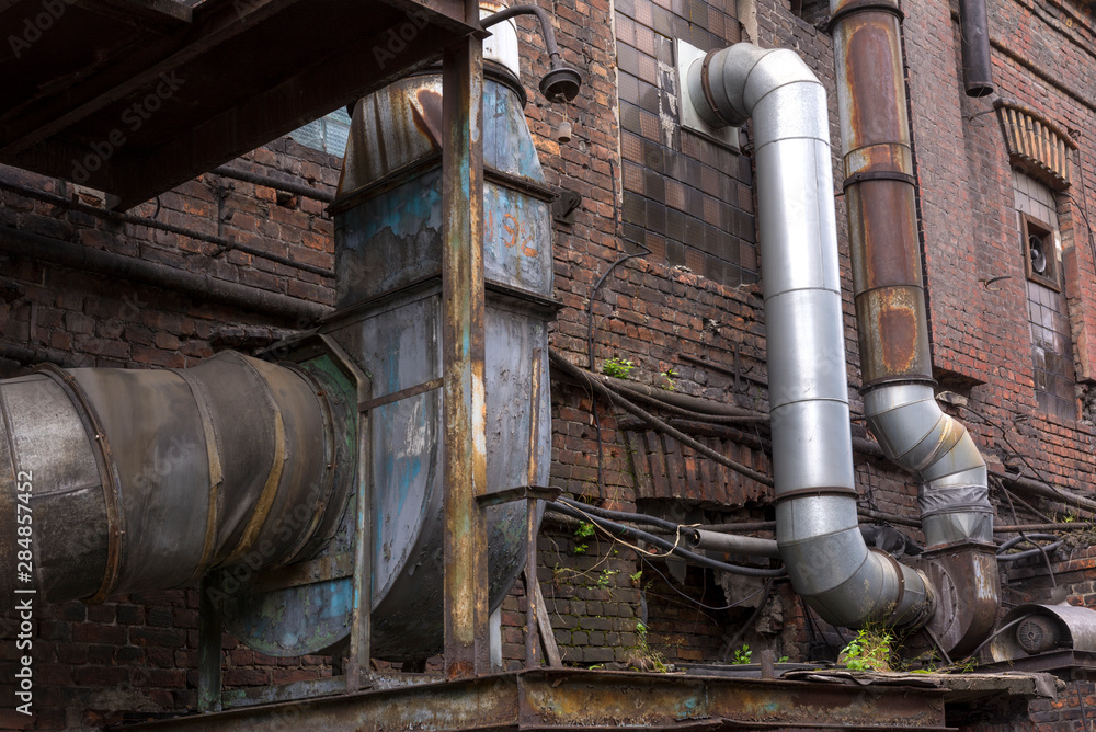 Old air duct for industrial air conditioning in the factory building.