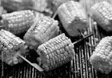 Grilled corn on the cob with butter and salt on the grill plate, close-up