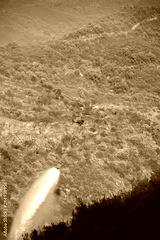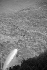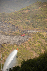 Helicopters putting out a forest fire in the Sierra Bermeja mountains in Estepona, Spain