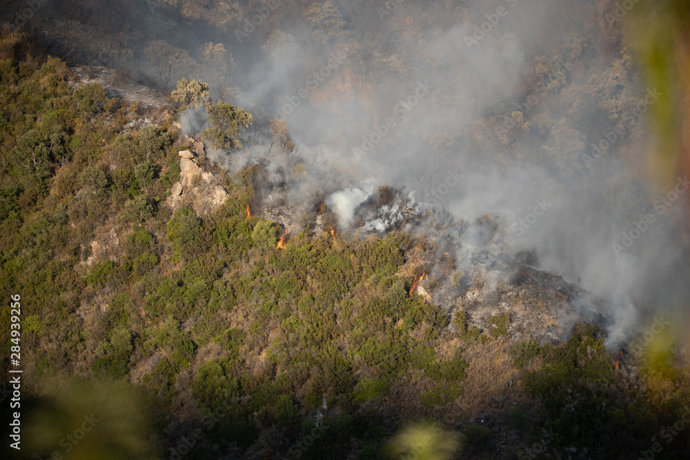Helicopters putting out a forest fire in the Sierra Bermeja mountains in Estepona, Spain