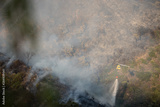 Helicopters putting out a forest fire in the Sierra Bermeja mountains in Estepona, Spain