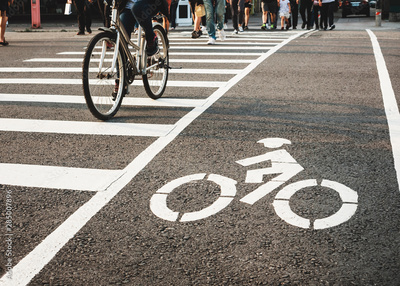Bike lane street crosswalk with People ride bicycle crossing street city Urban lifestyle