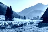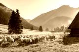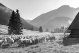 Sheep grazing on Meadow at Early Morning in Tatras Mountains Chocholowska Valley,Poland