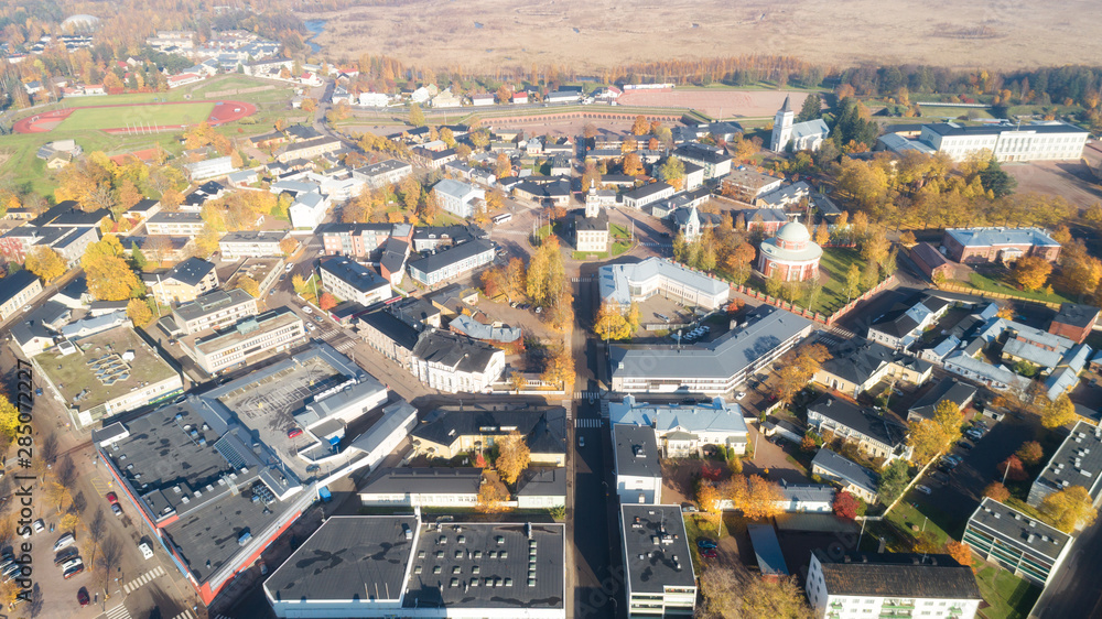 Aerial view of small city Hamina at Autumn. Finland. Day light.