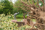 Zniszczenia po burzy. Efekt burzy gradowej. Sila Natury. Park w Bawarii. Polamane drzewa w Niemczech. Park miejski.