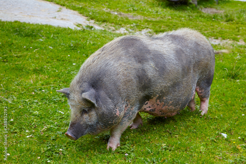 Old pot-bellied pig on the farm