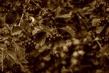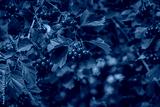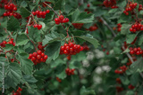 red berries of hawthorn on a branch, ripe clusters among green leaves, vitatmines from a branch, autumn landscape