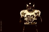 American football sportsman player in helmet on black background. Sport and motivation. Team sports.